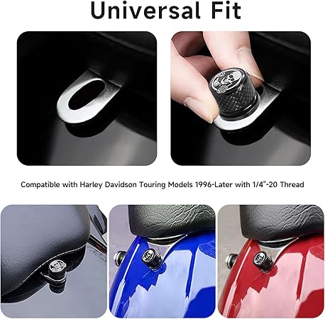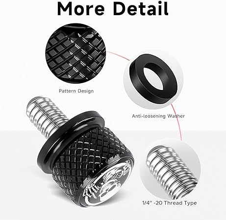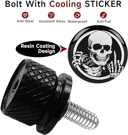 What’s Included: Your package includes one stainless steel bolt, a skull sticker, and a rubber gasket. The rubber gasket helps prevent loosening and wear for added durability. Please note: the thread type is 1/4″-20. Ensure compatibility by checking the thread type of your existing bolts before purchase.